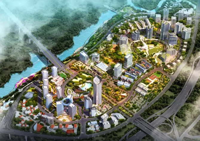 项目选址于重庆市渝北区仙桃街道数据谷东路19号,规划范围总面积为2674亩,项目实际总占地为1346亩(环路外边线围合范围面积),分为商务楼宇产业区和租赁式公寓等配套生活区,其中产业办公楼宇约81万平方米,酒店、公寓等配套建筑约39万平方米,规划常住人口2万人,注册企业10万家(含虚拟注册),引进龙头企业50家、核心企业300家。