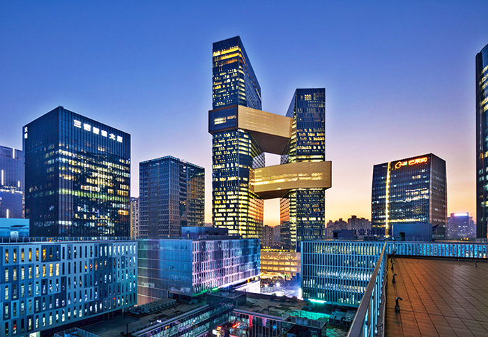 腾讯对于中国的消费者是个家喻户晓的名字,现在它是国际电商和网络科技领域的一支中坚力量。其新总部的建筑体现了公司上升的国际影响,它的网络文化和与万维网的互联性。连接的配置促进了工作空间内的走动和交换,创造了一副横向的“街景”和与竖向的联系。扩建项目将为另外的12,000名员工提供空间,而且几乎是腾讯现在办公空间不动产组合投资的四倍。